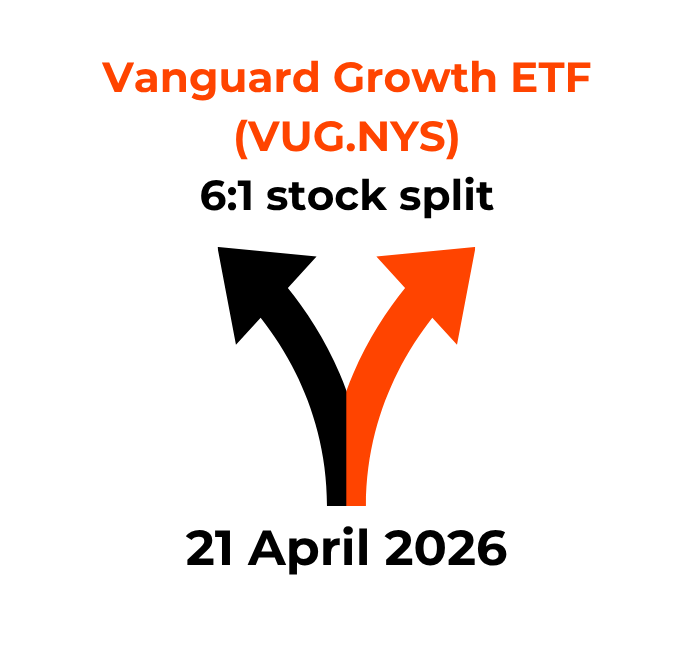 Vanguard Growth ETF (VUG.NYS) has announced a 6:1 stock split, effective Tuesday, April 21st 2026