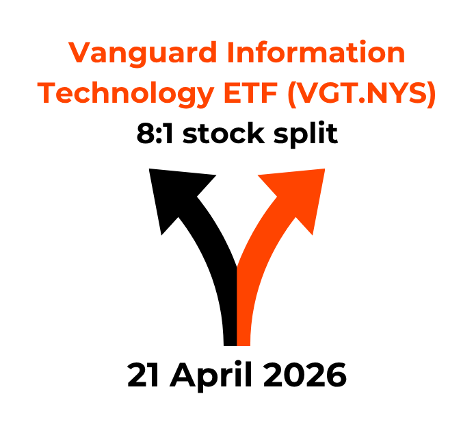 Vanguard Information Technology ETF (VGT.NYS) has announced a 8:1 stock split, effective Tuesday, April 21st 2026