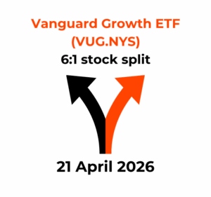 Vanguard Growth ETF (VUG.NYS) has announced a 6:1 stock split, effective Tuesday, April 21st 2026. Please take note of the following: